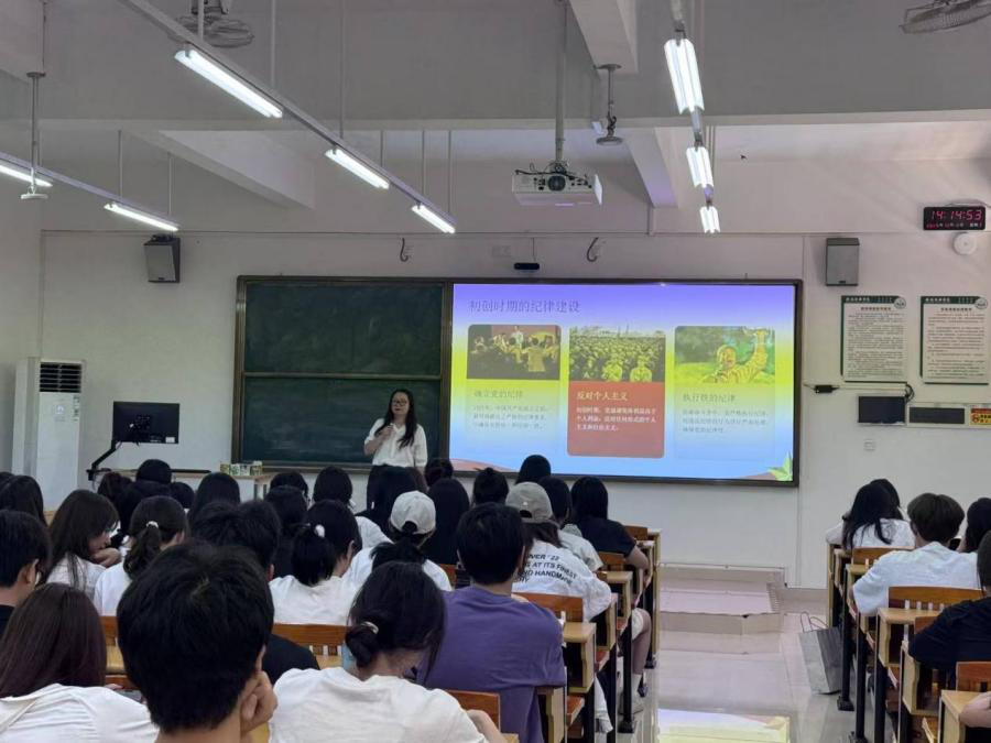 伊始,李文蓓院长简要回顾了中国共产党在纪律建设方面的优良传统,从建党初期的“铁的纪律”到新时代全面从严治党的实践,引出“纪律是组织生命线”的核心观点。她指出,纪律不仅是党的政治优势,也对青年学生的成长发展具有重要指导意义。
