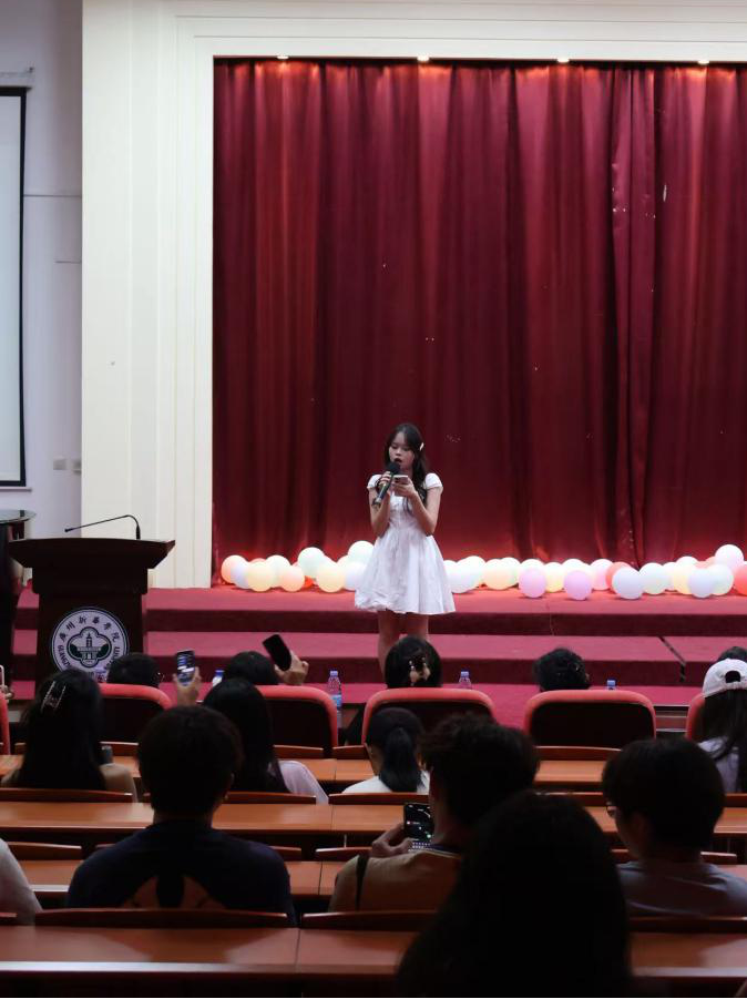 节目精彩纷呈,首先由23级C班的潘佳亮,以一支充满力量的舞蹈《咆哮》,瞬间点燃晚会首个高潮;23B班的陆秀岚献唱《热恋夏季》,婉转歌声中满是夏日微风的浪漫与甜蜜。;23C班的马嘉慧带来歌曲《如果呢》,细腻嗓音触动人心;24级林思妍演唱《特别的人》,温柔旋律传递出对珍贵情谊的珍视。;25级张俊鹏带来歌曲《一笑倾城》,尽显青春活力。