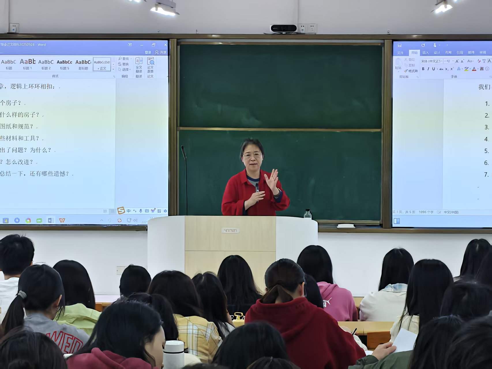 专业主任盖青就论文结构作出明确指导,并建议学生运用近五年数据技术深入分析研究对象,精准发现问题并提出有效对策。